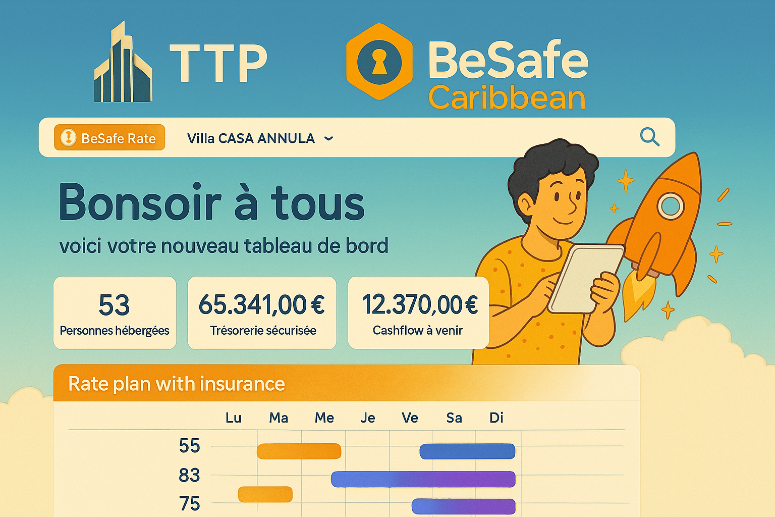 BeSafe Caribbean est une assurance tout-en-un, directement intégrée à votre moteur de réservation. Offrez à vos clients un tarif prépayé avec assurance incluse, augmentez vos réservations directes, sécurisez vos revenus, et simplifiez la gestion en cas d'annulation. Que vous soyez client TTP ou non, BeSafe Caribbean répond à vos besoins.
